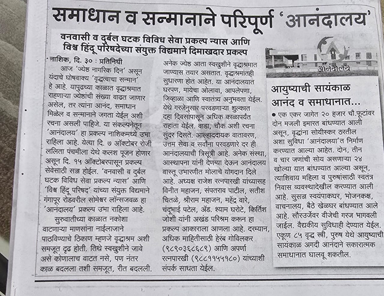 Anandalay : Trust has started the new activity i.e construction of old age home. For us it is not a old age home but it is 'Anandalay' – Happy life living for senior citizens. It is place for senior citizens where they will get energy to live happily & in a family atmosphere. With best services in affordable cost with love and affection is the motto of Anandalay. This will be possible because trust is having good tem of dedicated workers and trustees. Workers and trustees are Industrialists, C.A, Professionals, Doctors etc.